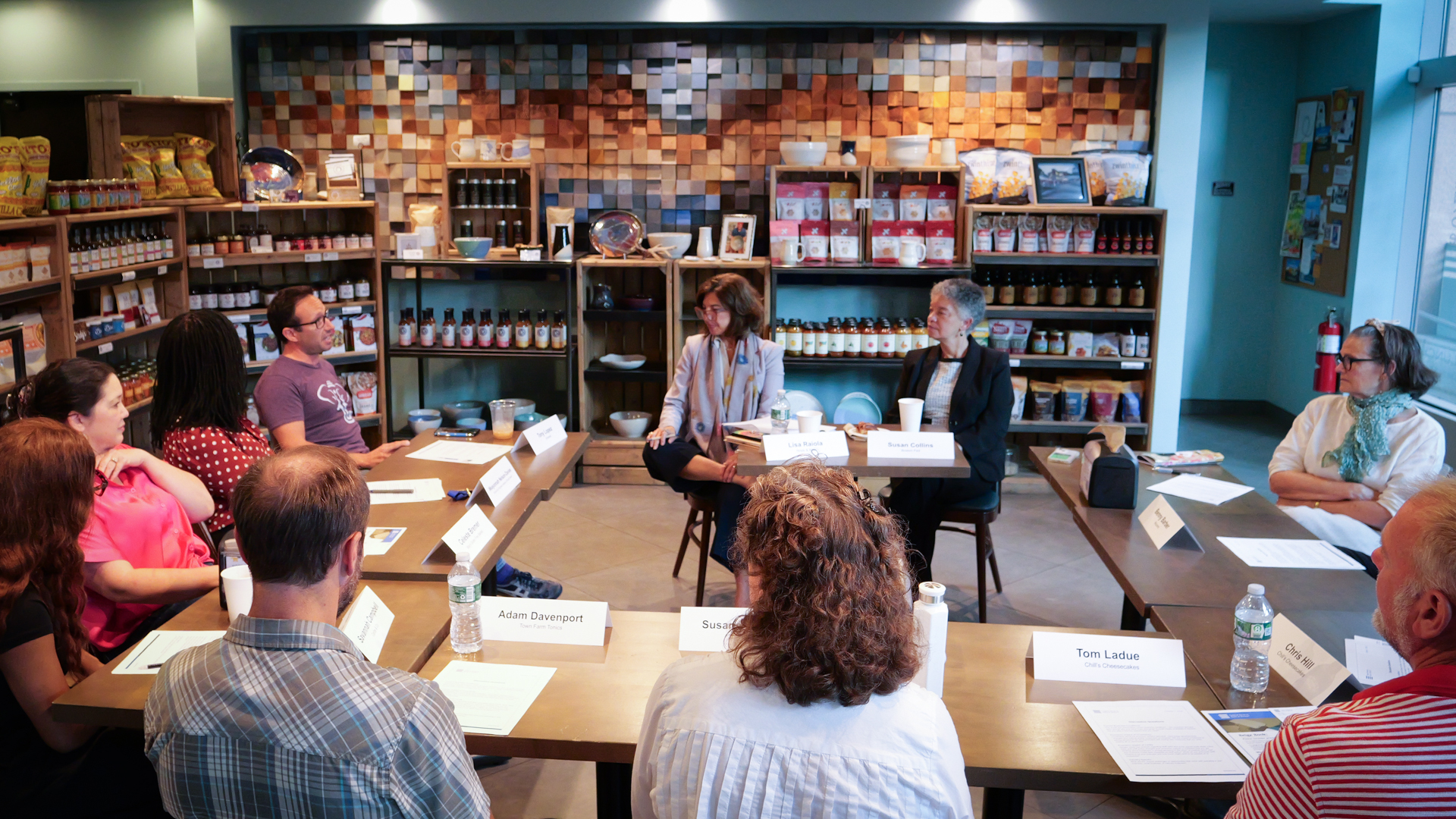 Tony Lopez, founder of specialty tea maker Schasteâ, speaks during at a roundtable discussion hosted by Hope & Main in Providence, Rhode Island. Steve Osemwenkhae/Federal Reserve Bank of Boston