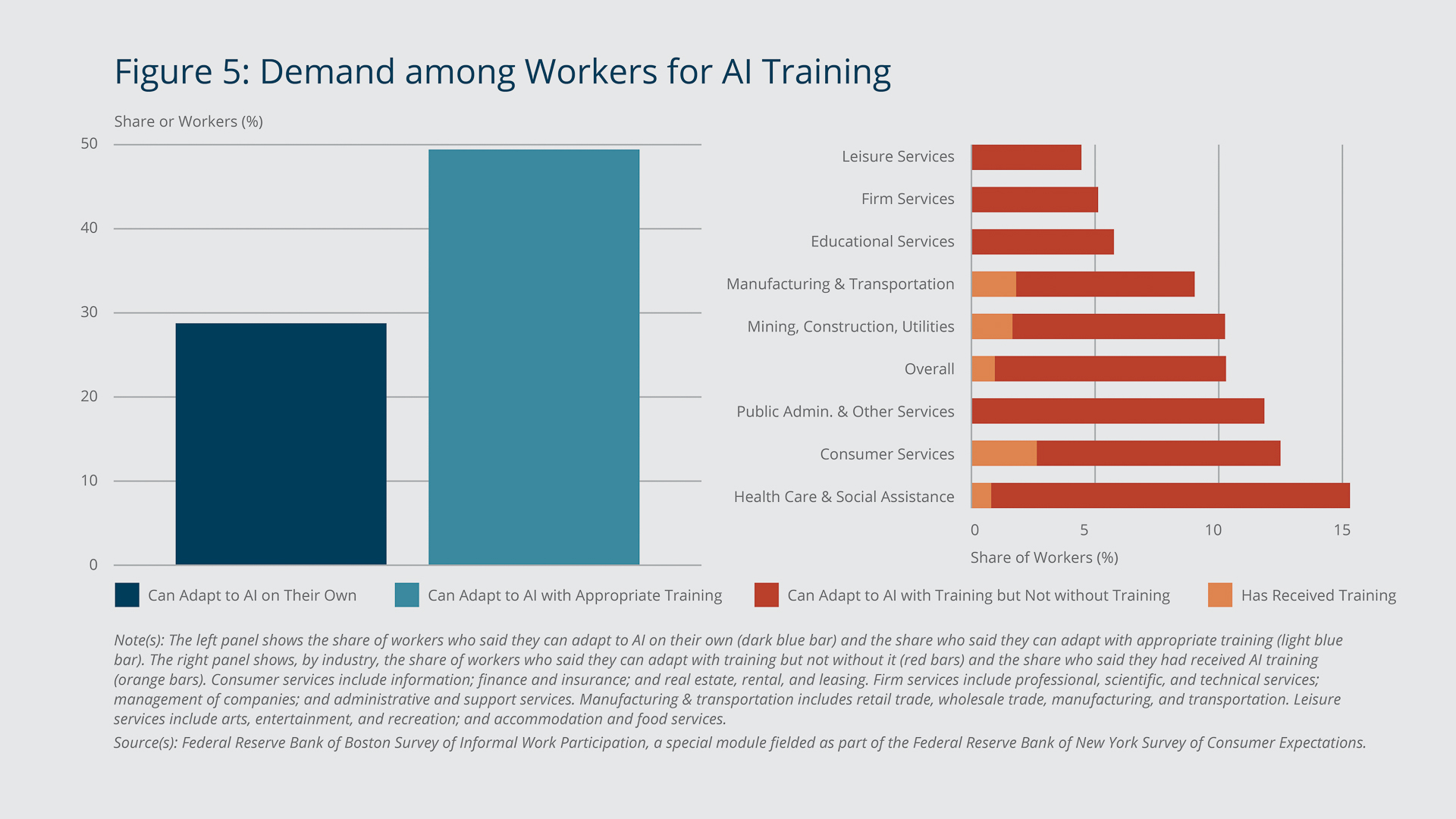 Addressing workers’ demand for training may ease the adjustment to using AI, reduce mismatches between businesses’ adoption of AI and workers’ preparedness to work with the technology, and ultimately promote more broad-based positive economic outcomes.